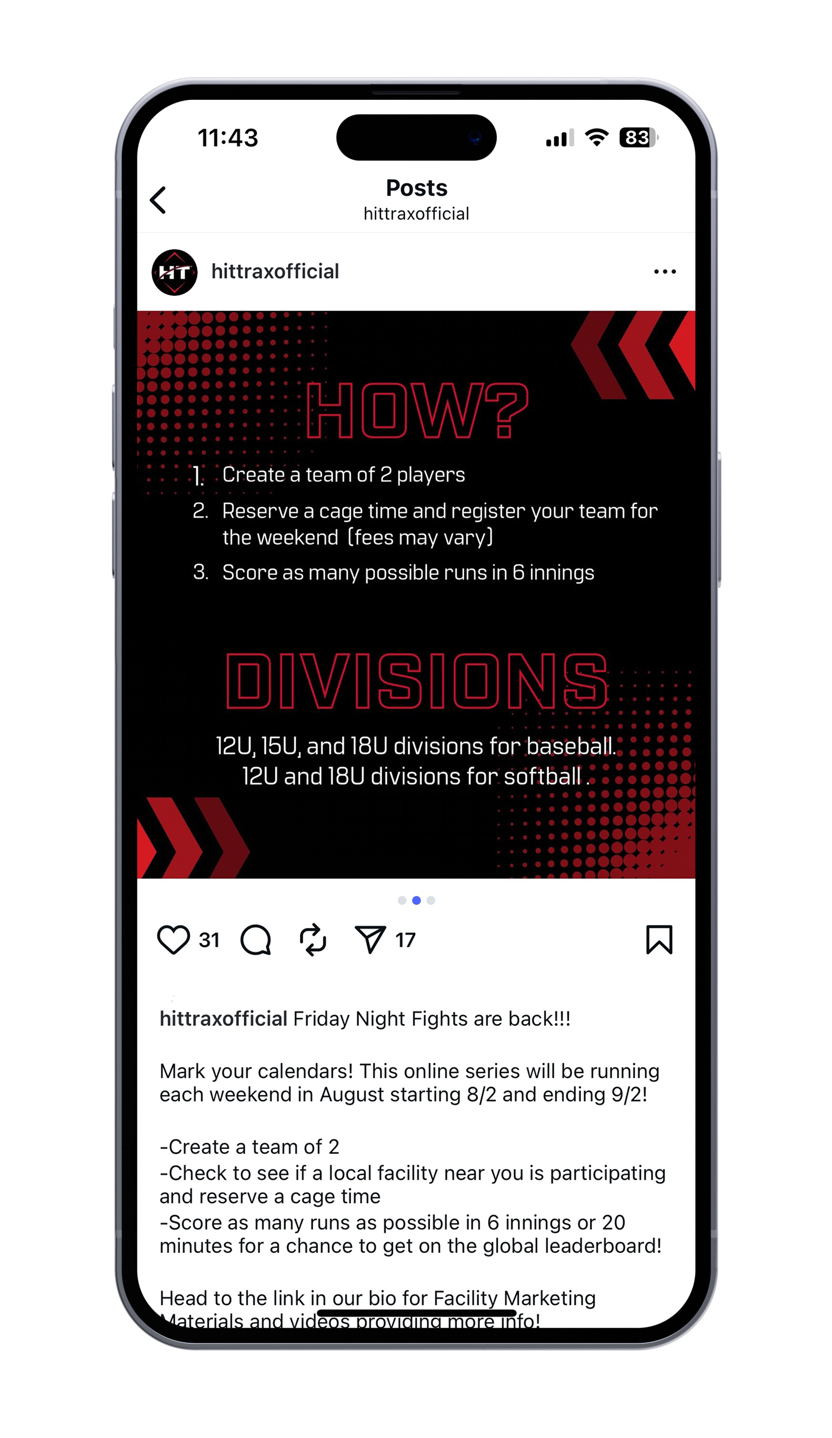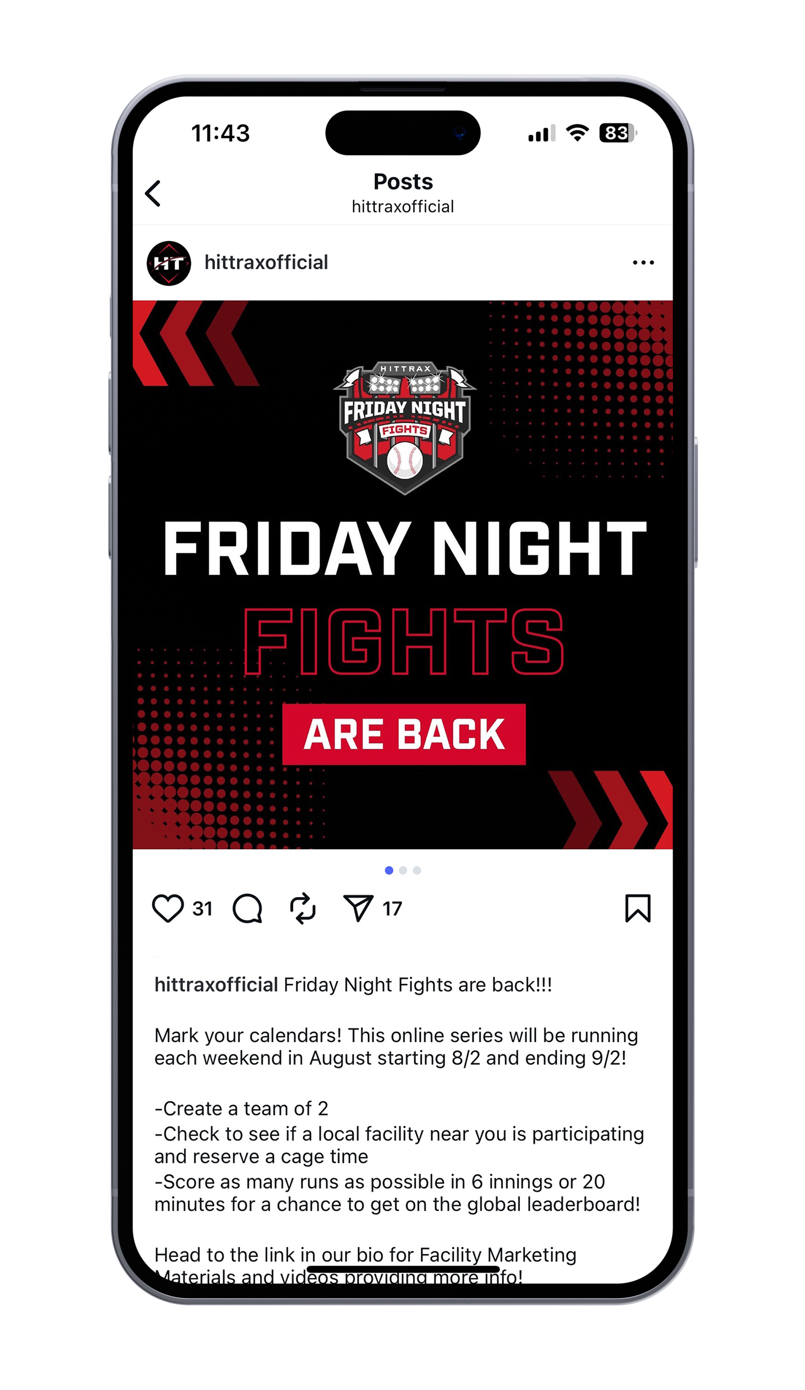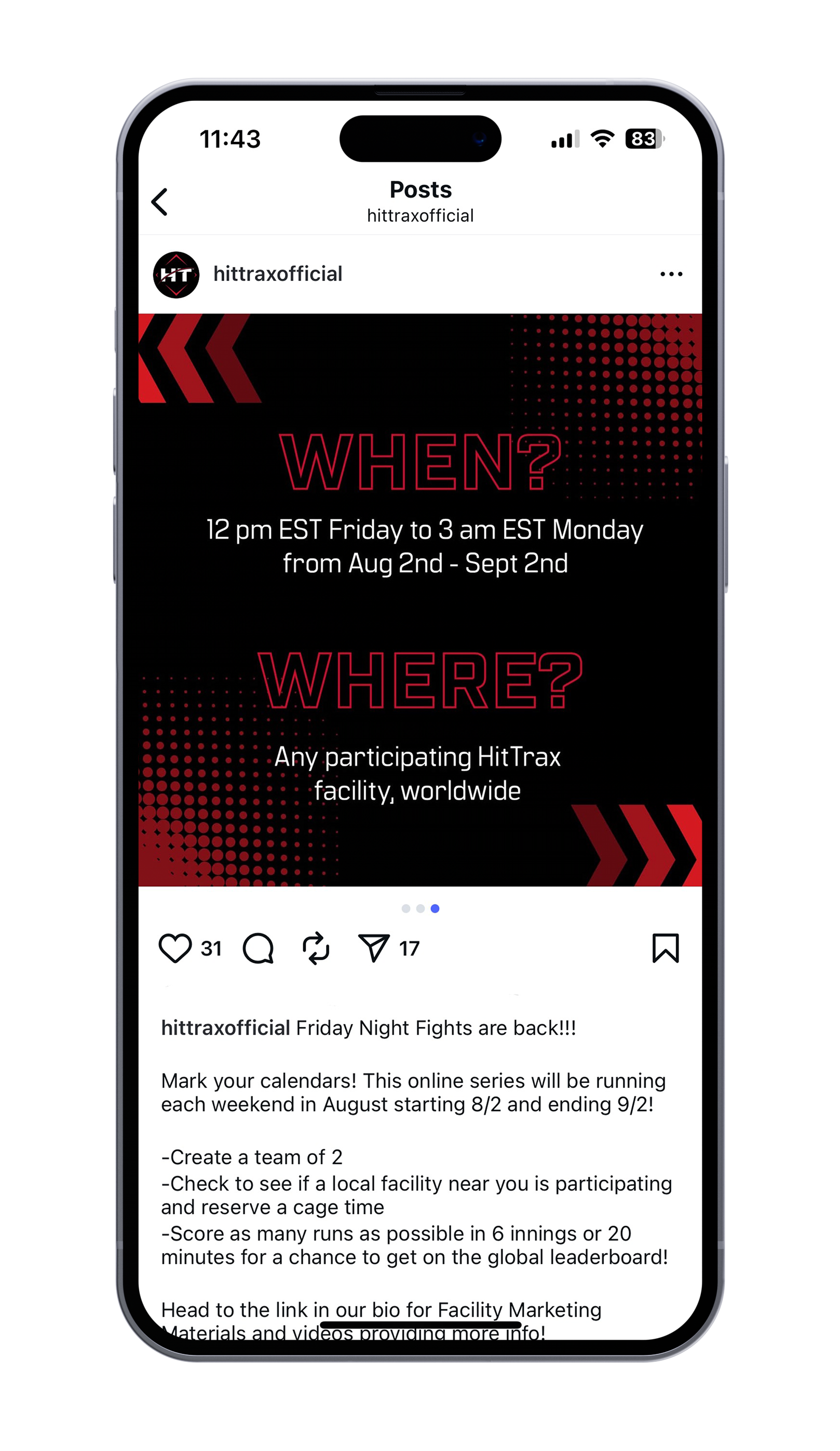 From there, I designed a full set of social assets alongside printed materials for facilities, ensuring everything worked together as one unified experience. The result is a flexible campaign that supports both user engagement and business goals for facility owners, while bringing a sense of community and competition to the HitTrax platform.